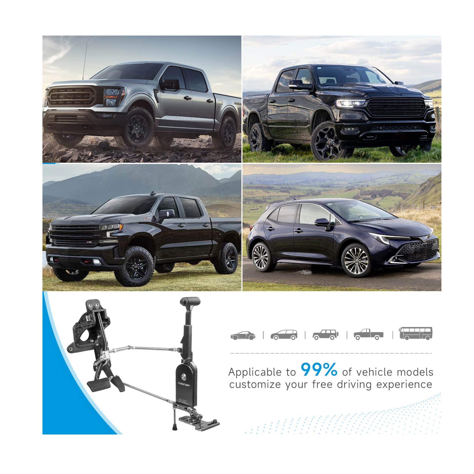Operation: The left foot accelerator is installed on the left side of the brake pedal and functions the same way as the standard right foot pedal, allowing the driver to accelerate the vehicle comfortably and safely with their left foot.